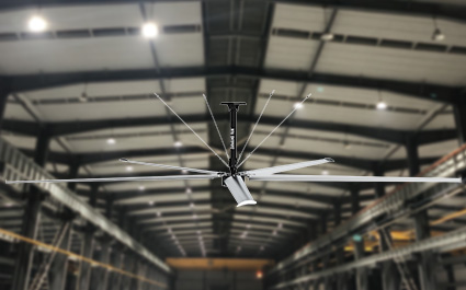 物流仓库储中心使用大型吊扇,能促进整个空间室内外空气流通交换,解决闷热,平衡空气湿度,有效避免其它通风方案的局限性所遗留的湿气带来的储物变质、腐烂等问题,同时改善工作环境。